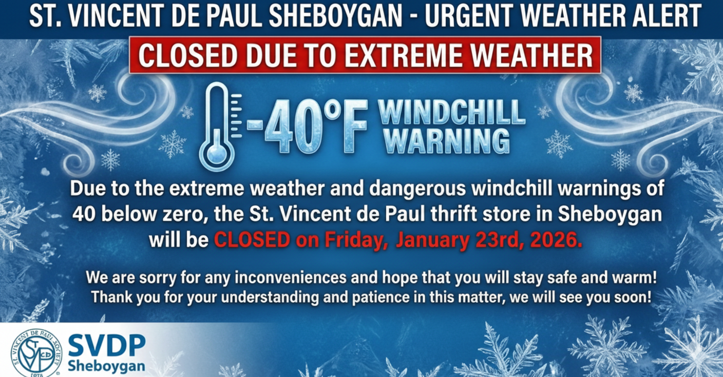 SVdP Sheboygan is a Catholic lay organization, as well as charitable non-profit organization, that provides financial and spiritual support to people needing assistance in the local Sheboygan County community. Financial support or in-store vouchers may include assistance with rent, utility, clothing, food and furniture. SVdP Sheboygan also provides spiritual or mentoring support to those in need of help. Members of The Society of St. Vincent de Paul, called Vincentians, perform home visits to meet neighbors in need, gather information, and counsel individuals and families needing help. Regardless of age, race, sexual orientation or religion; Vincentians see the face of Christ in those they serve. Our focus is on quality, not quantity. Our faith is our inspiration and motivation. Our goal is all work of charity and justice. St. Vincent de Paul Sheboygan operates a community thrift store on the north side of Sheboygan, which is conveniently located halfway between Milwaukee and Green Bay (Wisconsin) near the intersection of I-43 and Hwy 42. We have been established at our current location since 1994. The purpose of our Community Thrift Store is to support the Catholic church in their daily mission by helping those in need.