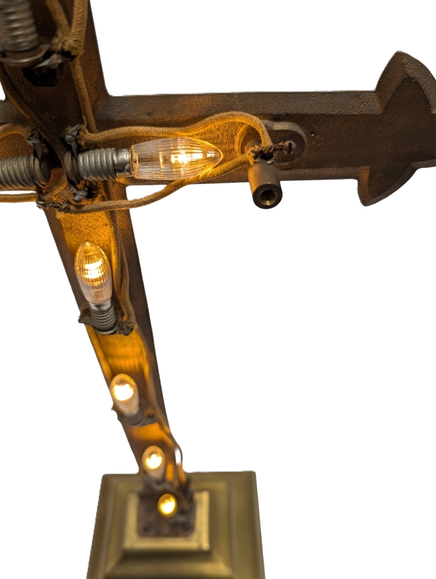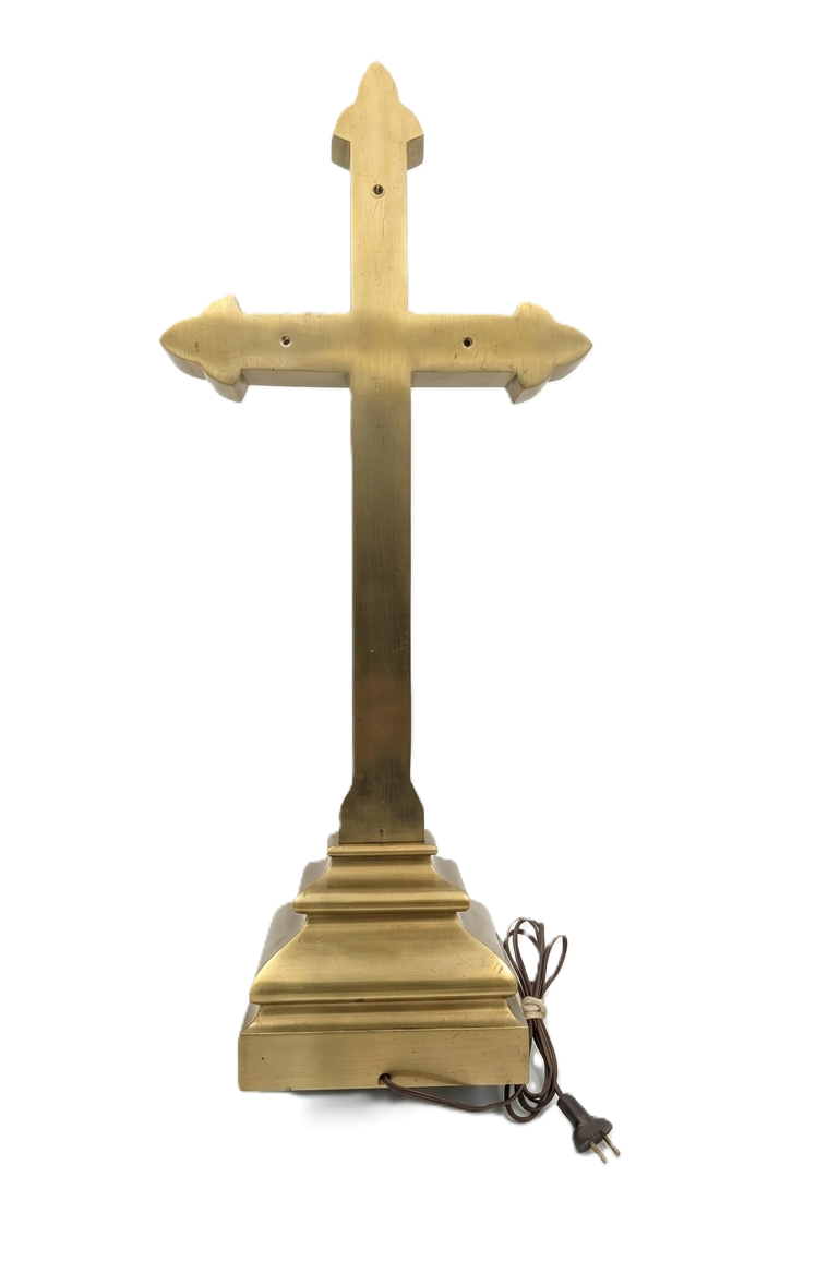 Antique 1930s Solid Brass Lighted Crucifix 29.5″ Heavy 27lb Altar Cross Illuminated Church Salvage LED Halo Gothic Decor