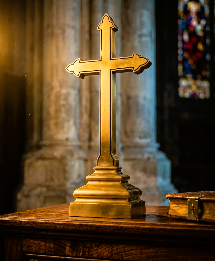 Shipping Note: Due to the extraordinary 27-pound weight and large dimensions of this solid brass cross, it will be meticulously packed with ample padding to ensure safe transit. Shipping costs reflect the size and weight required to get this heirloom piece to you safely.